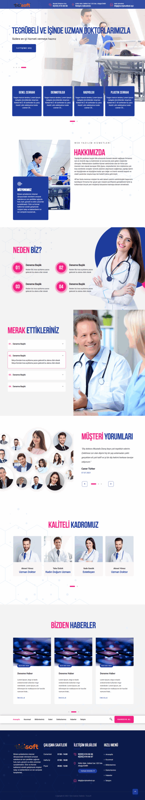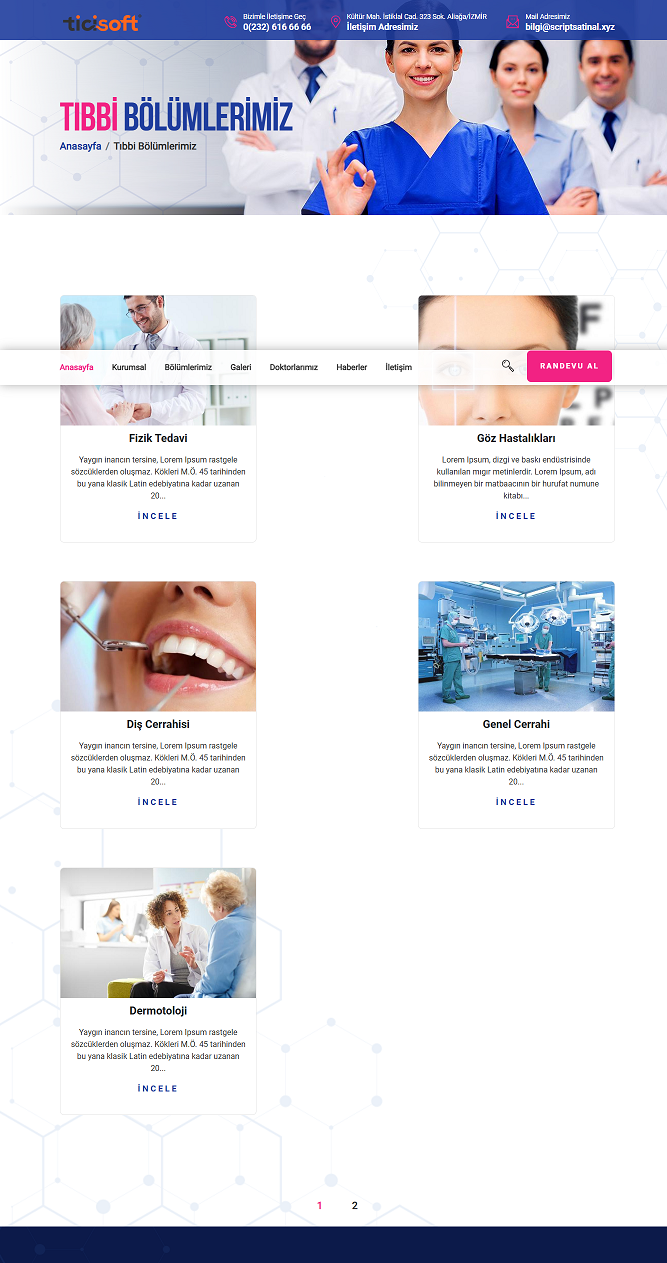 Ana sayfa, Tıbbi Bölümler, Doktorlarımız ve Hakkımızda gibi hazır sayfalar