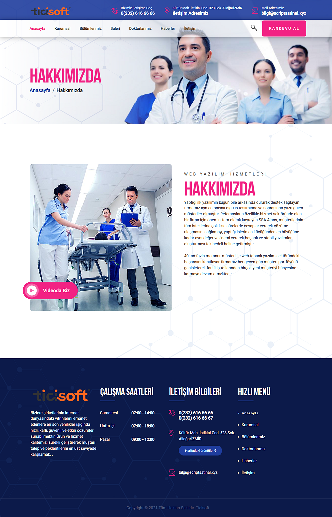 Hastane yönetim sistemi, klinik yönetim scripti, online randevu sistemi, PHP sağlık scripti, doktor web sitesi, hastane web sitesi, randevu takibi, hasta yönetimi, tıbbi bölüm yönetimi, klinik yazılımı, profesyonel web sitesi, sağlık sektörü, hasta yorumları.