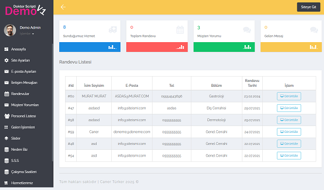 İletişim formu ile gelen mesajları ve randevu taleplerini panelden kolayca yönetin