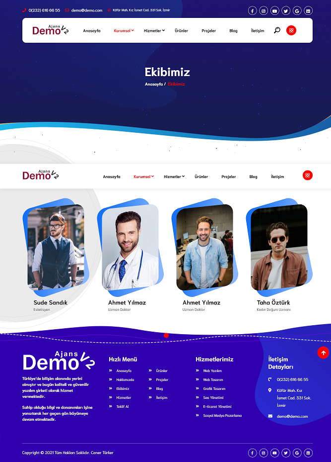 Ekibimiz modülü ile çalışanlarınızı unvanları, fotoğrafları ve kısa biyografileriyle tanıtma