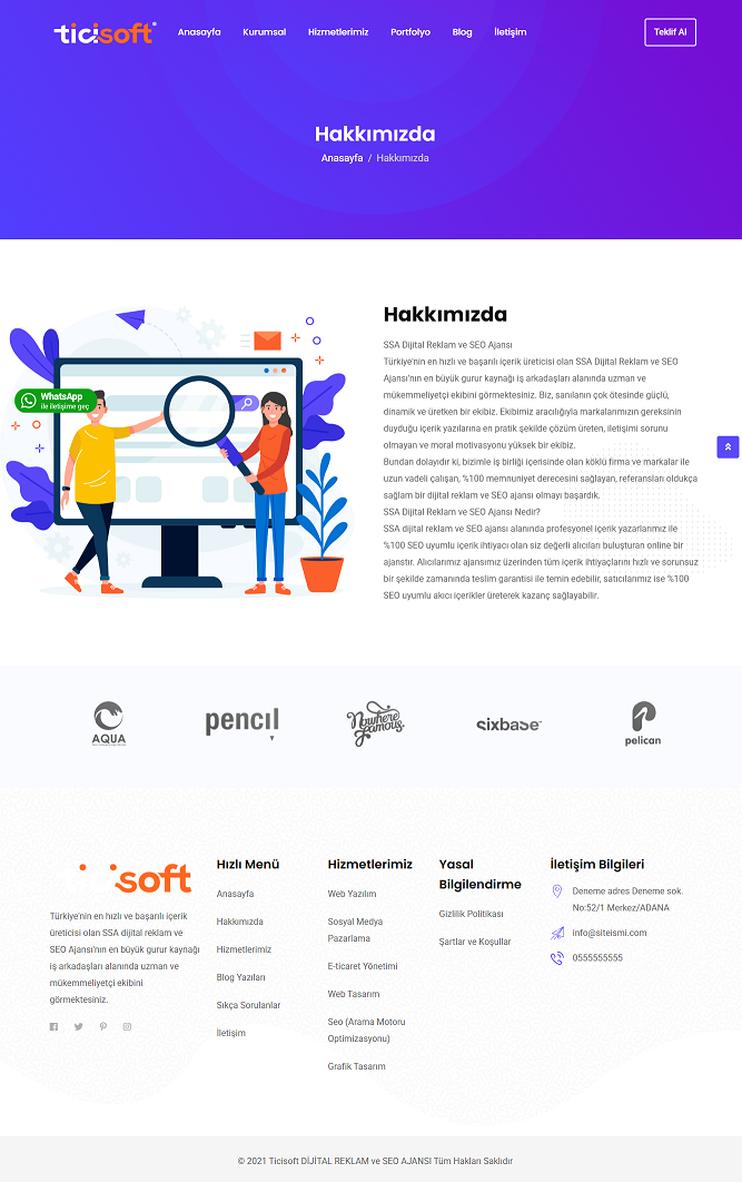 Dijital ajans scripti, reklam ajansı web sitesi, PHP ajans yazılımı, SEO ajansı, sosyal medya yönetimi, dijital pazarlama, portfolyo scripti, müşteri referansları, kurumsal web sitesi, blog yönetimi, dijital ajans çözümleri, reklamcılık, web tasarım, içerik pazarlaması.