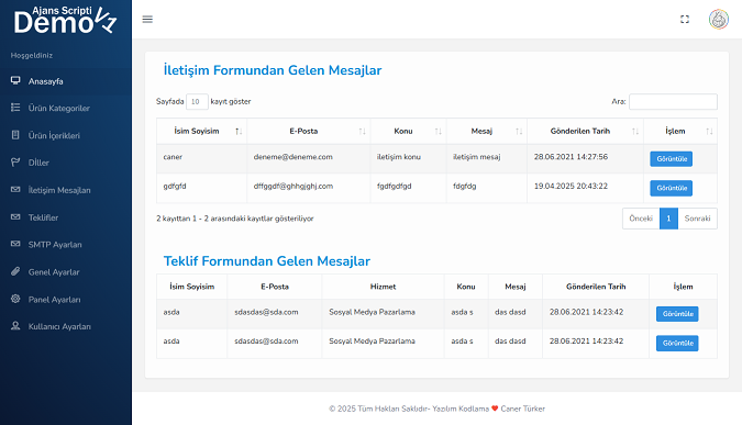 Hizmetler, projeler, blog yazıları, müşteri yorumları, iletişim bilgileri… hepsi tek panelde
