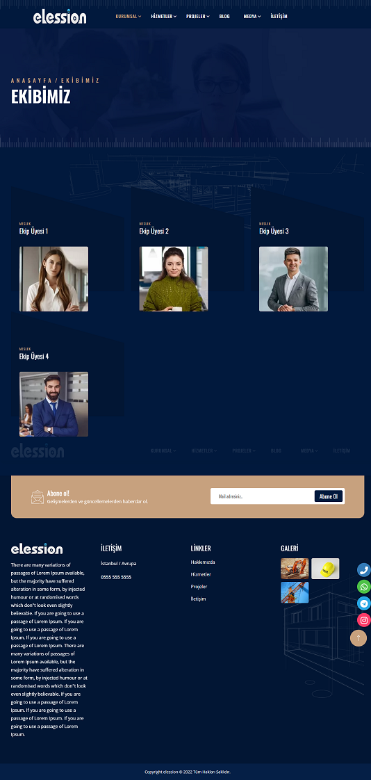 • “Ekibimiz” sayfasında mimarlar, mühendisler ve proje yöneticileri tanıtılır