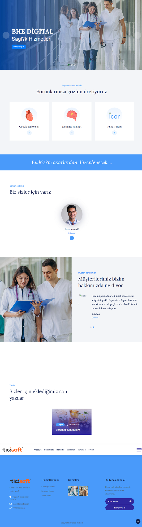 medikal hizmetler yönetim paneli, SEO uyumlu sağlık sitesi,